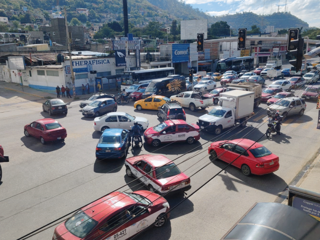 La congestión vial en Oaxaca de Juárez se ha vuelto crítica: miles de automovilistas, transportistas y peatones enfrentan retrasos prolongados, mientras los comercios del centro histórico operan entre cierres parciales y la presencia del plantón magisterial que se extiende por varias calles.