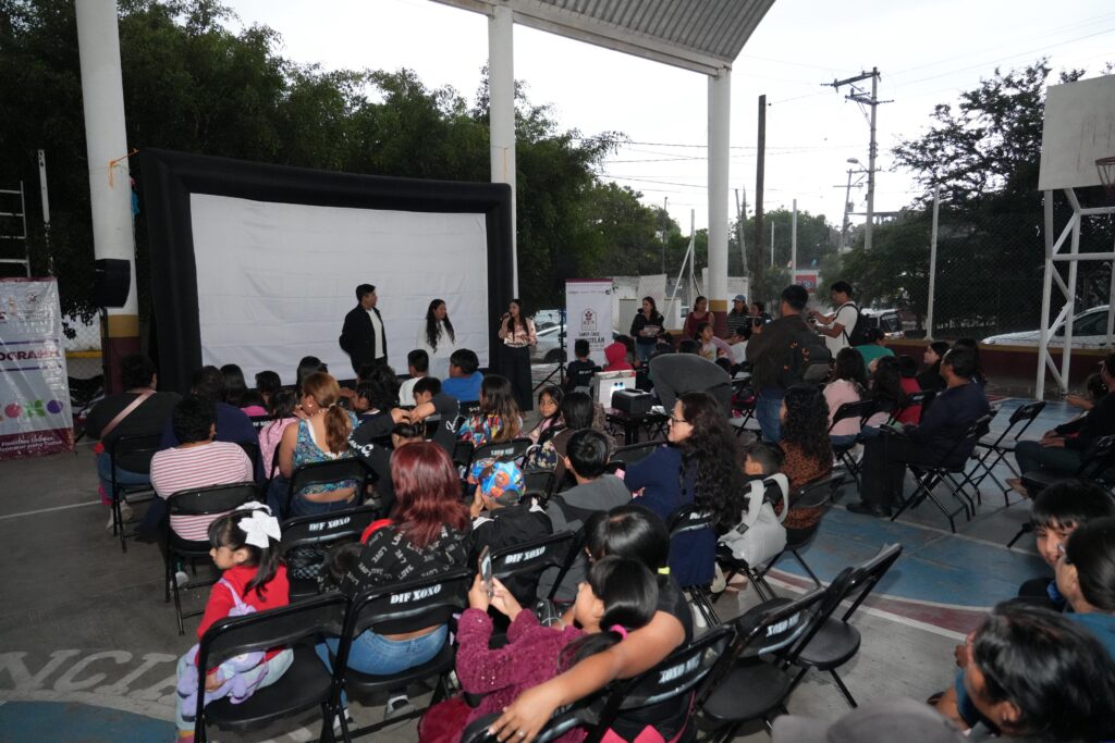 Santa Cruz Xoxocotlán, Oax.- Sonrisas, emoción y muchas palomitas marcaron el inicio del programa “DIFverticine, cine móvil”, la iniciativa del DIF Municipal que busca regalar diversión y aprendizaje a las niñas y niños xoxeños.