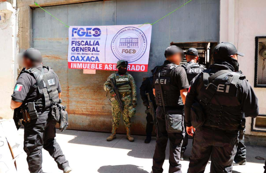 Durante el operativo, la Vicefiscalía Regional de Valles Centrales ejecutó diez cateos simultáneos, logrando el aseguramiento de siete inmuebles relacionados con distintas actividades ilícitas. En uno de ellos —ubicado sobre la Privada de Galeana, detrás de una fachada que simulaba una bodega con baños públicos—, los agentes encontraron más de 200 autoestéreos distribuidos en un cuarto acondicionado como sala de exhibición.
